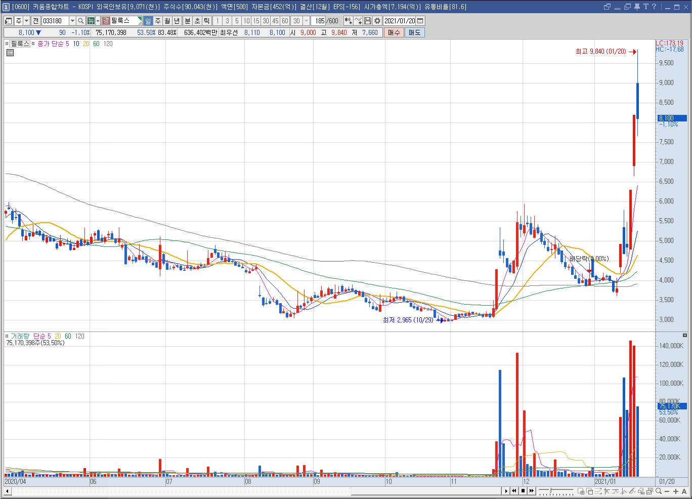 2021/01/20 필룩스 장중 확인